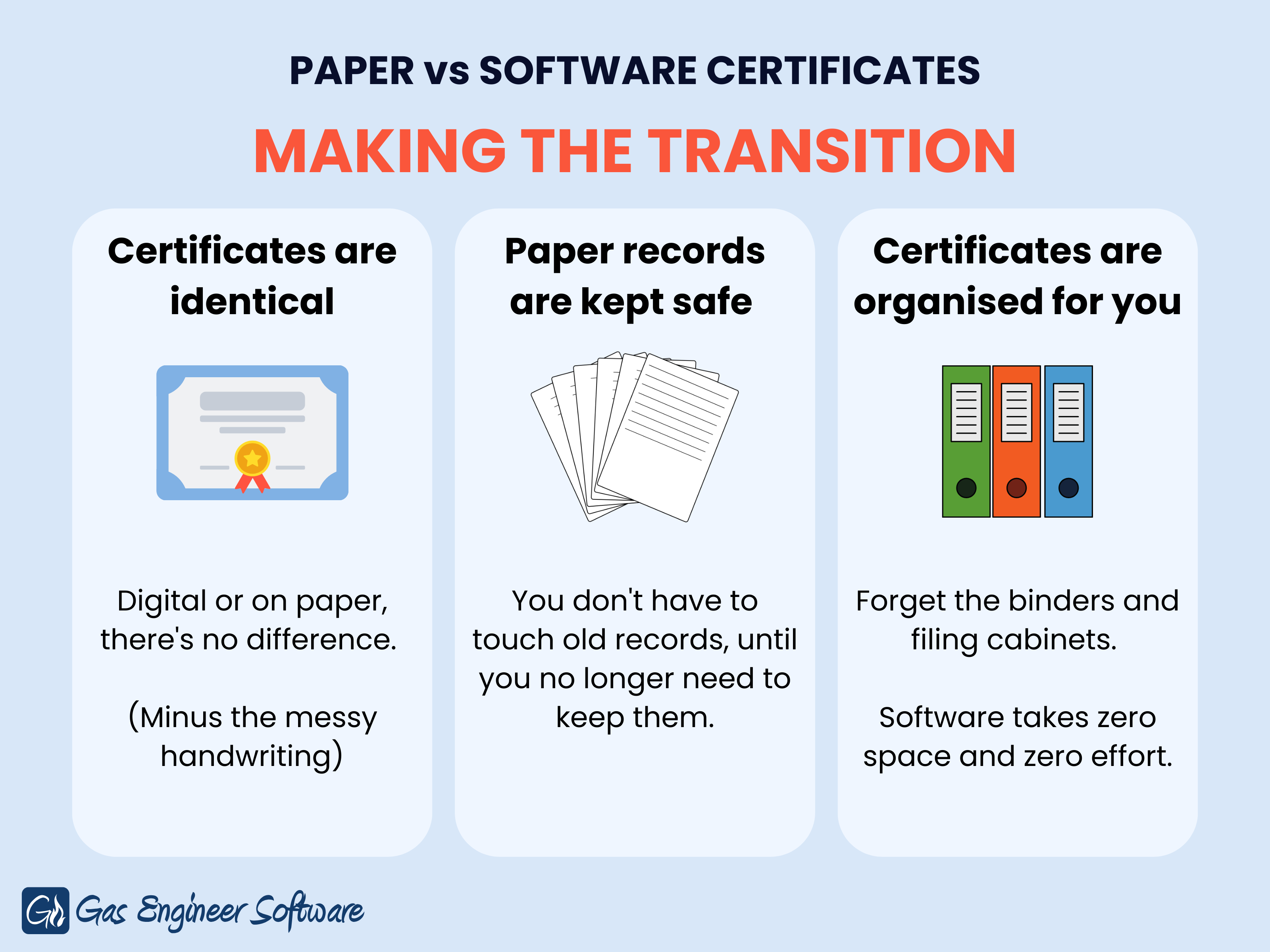 Fortunately, we live in a day and age where there’s a digital solution for just about anything. Going paperless with your gas safe certificates means saving precious time: Time that you could be investing into more important aspects of your business or with friends and family.